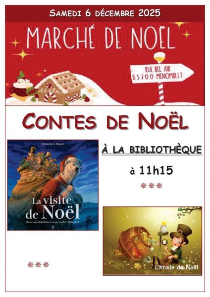 A l'occasion du Marché de Noël, la bibliothèque organise une animation et la lecture de 2 contes de Noël pour les enfants :